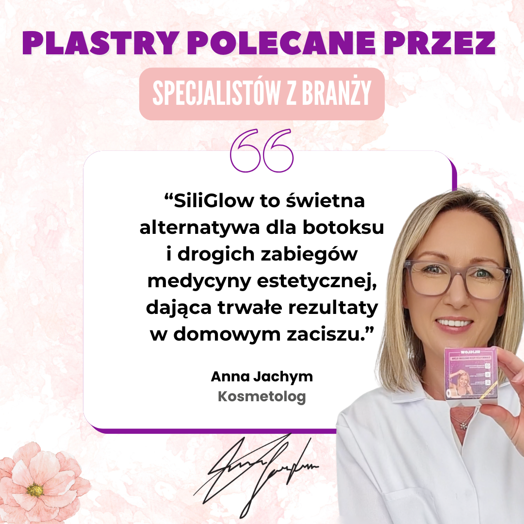 „Zmarszczki mimiczne i utrata jędrności skóry to jedne z najczęstszych problemów, z którymi zgłaszają się moje pacjentki. SiliGlow wyróżnia się dzięki technologii SmoothLift™, która łączy nawilżenie, stabilizację i stymulację kolagenu, zapewniając widoczne wygładzenie skóry bez inwazyjnych zabiegów. Widziałam efekty nawet u osób z delikatną i wrażliwą cerą – po kilku tygodniach regularnego stosowania zmarszczki stają się płytsze, a skóra odzyskuje sprężystość i promienny wygląd. To świetna alternatywa dla botoksu i drogich zabiegów medycyny estetycznej, dająca trwałe rezultaty w domowym zaciszu.”